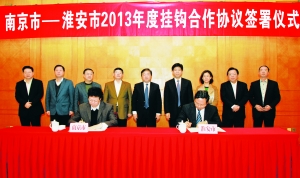 淮安政府网消息: 1月26日上午,南京、淮安两市2013年度挂钩合作协议在宁签署。南京市市长季建业和淮安市市长曲福田分别在签约仪式上讲话。南京市副市长罗群、陈刚,淮安市领导练月琴、王正喜、杨时云、仲柯出席签约仪式。